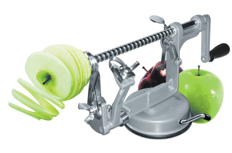 A few simple turns of the crank handle and your apple is peeled, cored and sliced effortlessly. Make perfect 5mm sized slices for all of your homemade apple creations. But not only apples why not try pears and even potatoes.