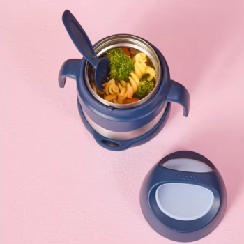 Its unique flexi whole fruit holder lets you store a whole apple, as the stretchy seal bends around the shape of your fruit – no need to cut fruit into smaller sizes! Leak-proof silicone seals lets you store wet foods like watermelon and yoghurts (no liquids). The custom divider slides across, enabling parents to adjust the compartment size as they need, or remove it to fit a whole banana or wrap.