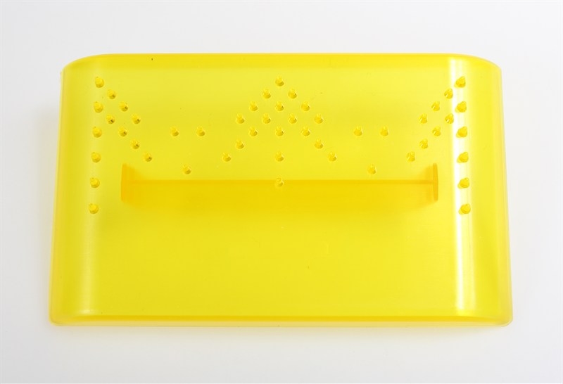 Held horizontally, Press-Ice Pattern 3 will impress a drape design 3.5 cm deep around the side of a cake, with a clear 3 cm margin beneath the pins.
