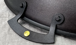 - Durable black iron handles fixed with annealed iron rivets.