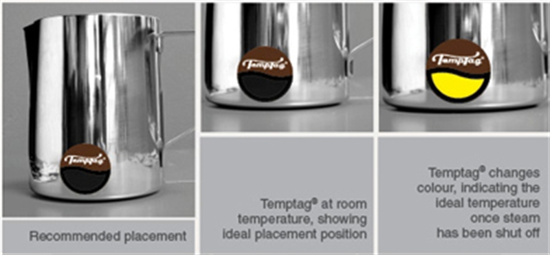 Once the milk reaches the ideal temperature, the colour will react, giving an instant indication that the milk is ready to be served. TempTag’s patented technology has been developed for full cream and skim milk, while another has been specially developed for soy milk.