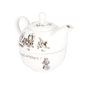 A quirky addition to any afternoon tea, this fine china cake stand features iconic quotes like ‘Have I gone mad?’ and ‘Curiouser and curiouser!’ Each tier showcases a different design inspired by an Alice in Wonderland card game, based on illustrations by Sir John Tenniel (1820–1914). The bottom tier shows Alice and the Queen of Hearts, the middle tier depicts Alice conversing with the Cheshire Cat, and the top tier mimics a cup and saucer, decorated with pocket watches, golden keys, and top hats. A looped handle makes it easy to transport from one room to another. The black-and-white prints are finished with luxurious gold decals, adding elegance to your tea-time presentation.