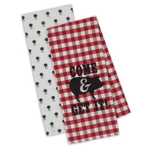 Soft yet durable, cotton tea towels like this charming two-piece Come & Get It set from Design Imports bring everyday joy and function to any kitchen. A cheerful reminder of the little moments and shared routines that weave a relationship tighter.