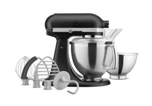 The Cast Iron Black KitchenAid Artisan KSM195 Stand Mixer blends industrial strength with sleek design. Complete with multiple speeds, two bowls, and an array of accessories, it’s the ultimate companion for couples who love to cook, create, and celebrate the everyday joys of being at home together.