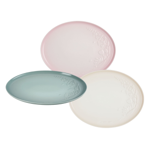 A floral serving platter brings elegance to any table, perfect for fruit spreads, baked treats, or shared meals with loved ones. Le Creuset‘s La Collection Jardin Oval Serving Platter, available in soft, romantic shades like Sea Salt, Shell Pink, and Meringue, combines timeless craftsmanship with delicate botanical design, capturing the spirit of a love that continues to bloom.