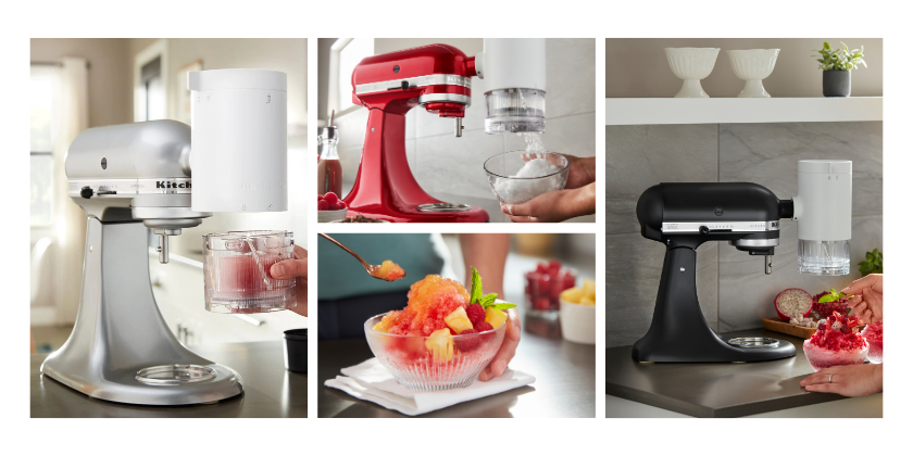 Whether it’s kids excitedly watching their ice cream come to life, adults enjoying espresso martinis over freshly shaved ice, or a dinner party finishing with a succulent homemade sorbet, these attachments elevate sweet moments using the stand mixer you already love.