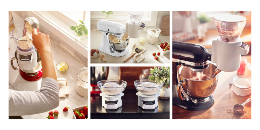 Take your baking a step further with the KitchenAid Sifter + Scale Attachment, the all-in-one tool for hands-free automatic sifting and accurate weighing, ensuring perfectly measured and aerated ingredients every time.