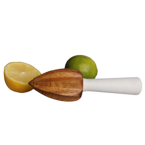 Gabel & Teller offer the Acacia & Marble Finish Citrus Reamer for those seeking a stylish twist on a classic tool, combining elegant design with practical function.