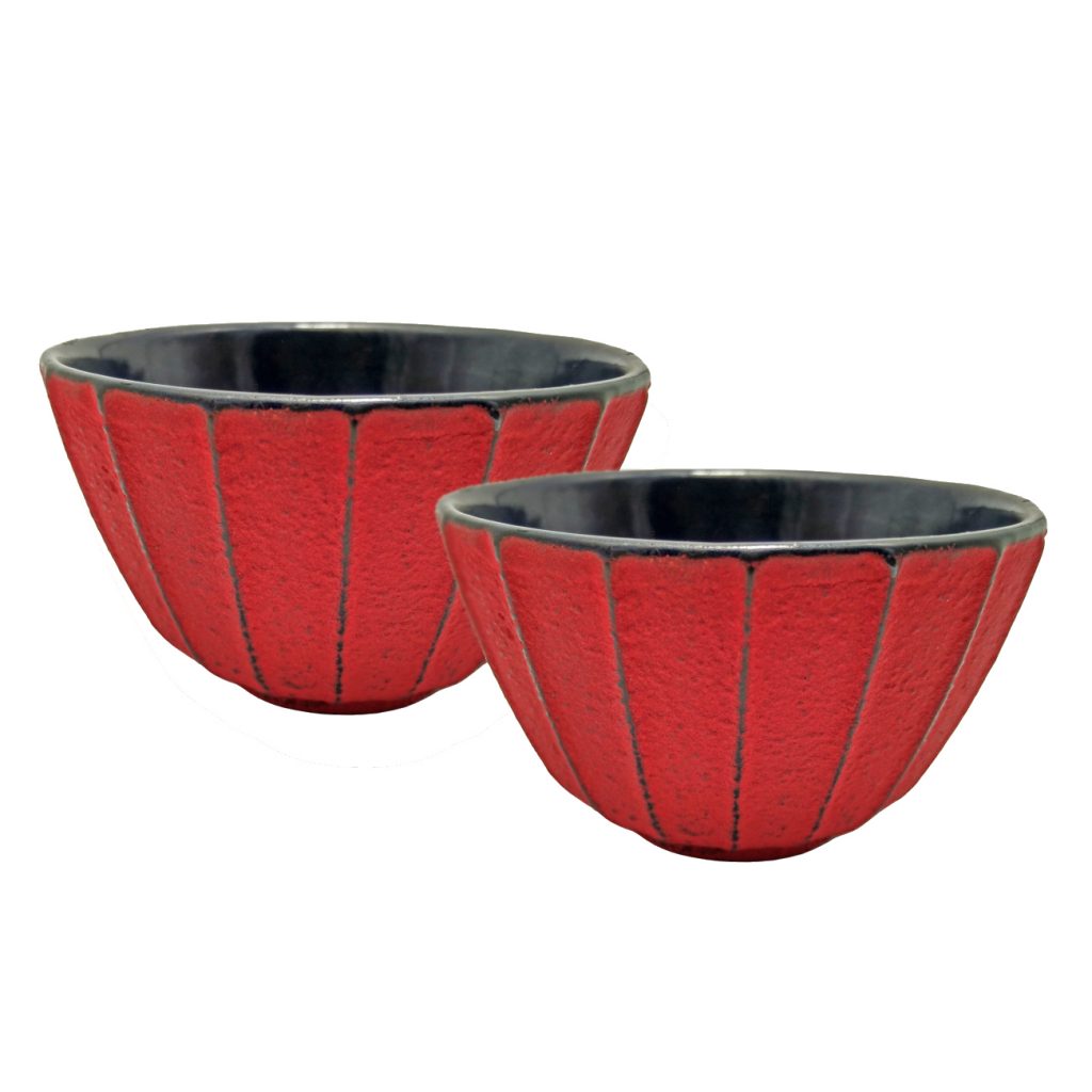 Teaology Cast Iron Tea Cups Set of 2 Ribbed Red/Black 120ml