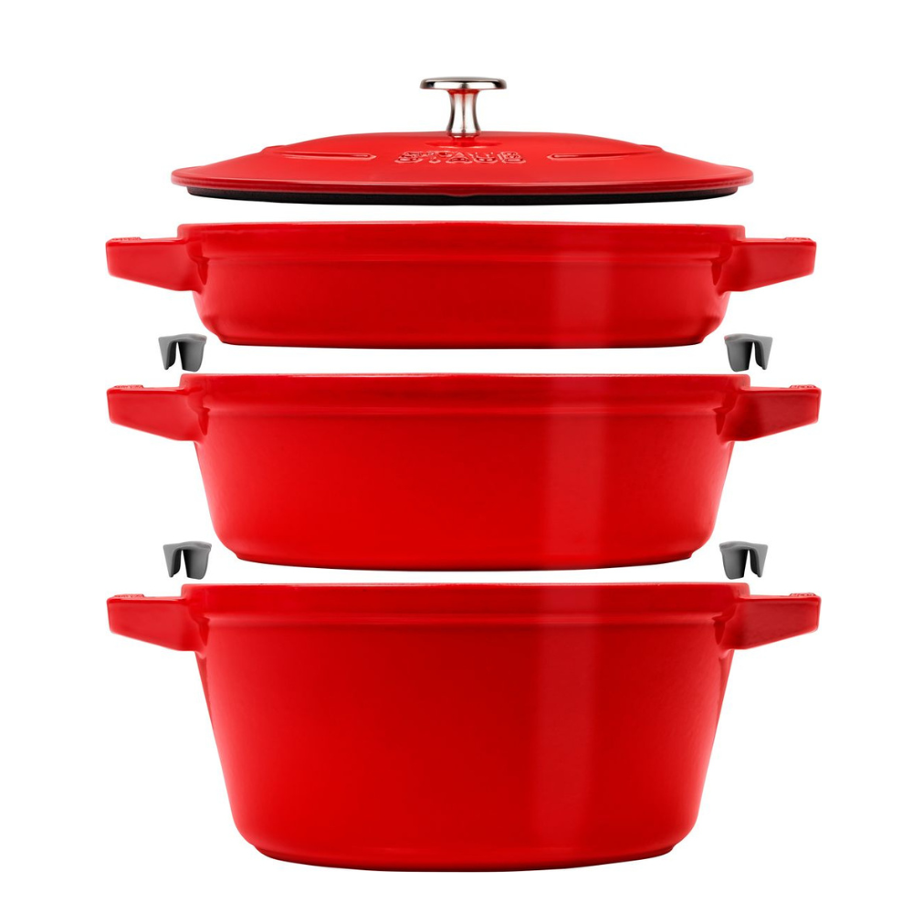 The clever designers at Staub have combined some of their favourite pieces in this ingenious stackable set. Starting with the...