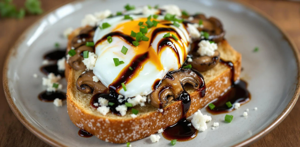 Gourmet Mushroom and Poached Egg Toast with Sticky Balsamic Premium Truffle